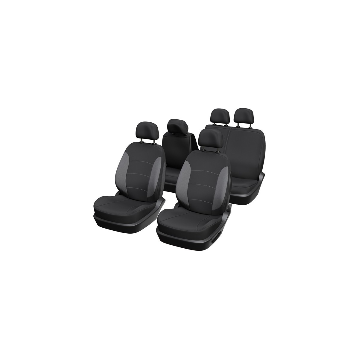 Este producto contiene: - 2 Fundas para asientos delanteros - 5 Fundas para reposacabezas - 1 Funda de respaldo para asiento de banco trasero - 1 Funda para asiento de banco trasero