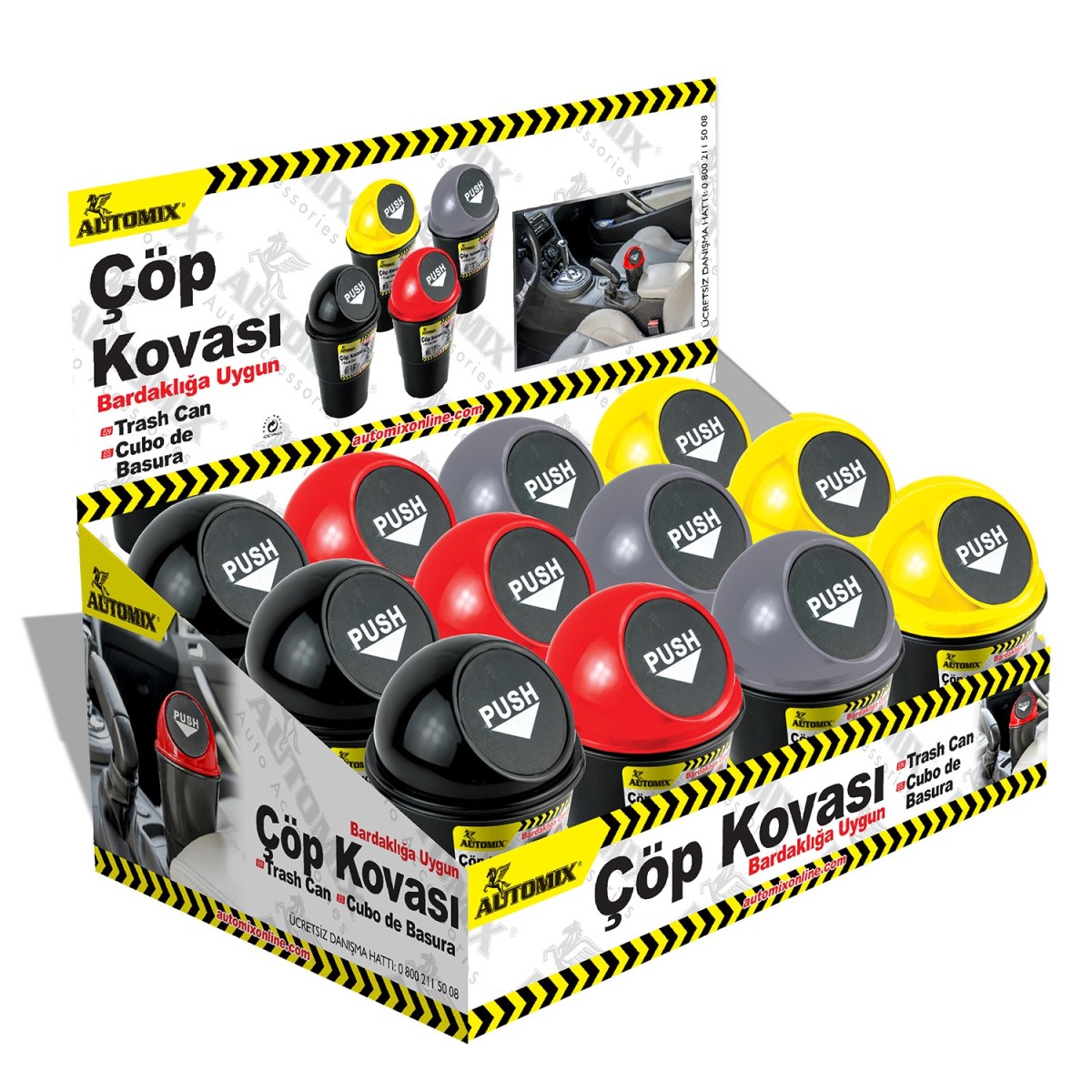 PAPELERA PORTATIL 18X10CM COLORES SURTIDOS EXP.12UDS AUTOMIX
