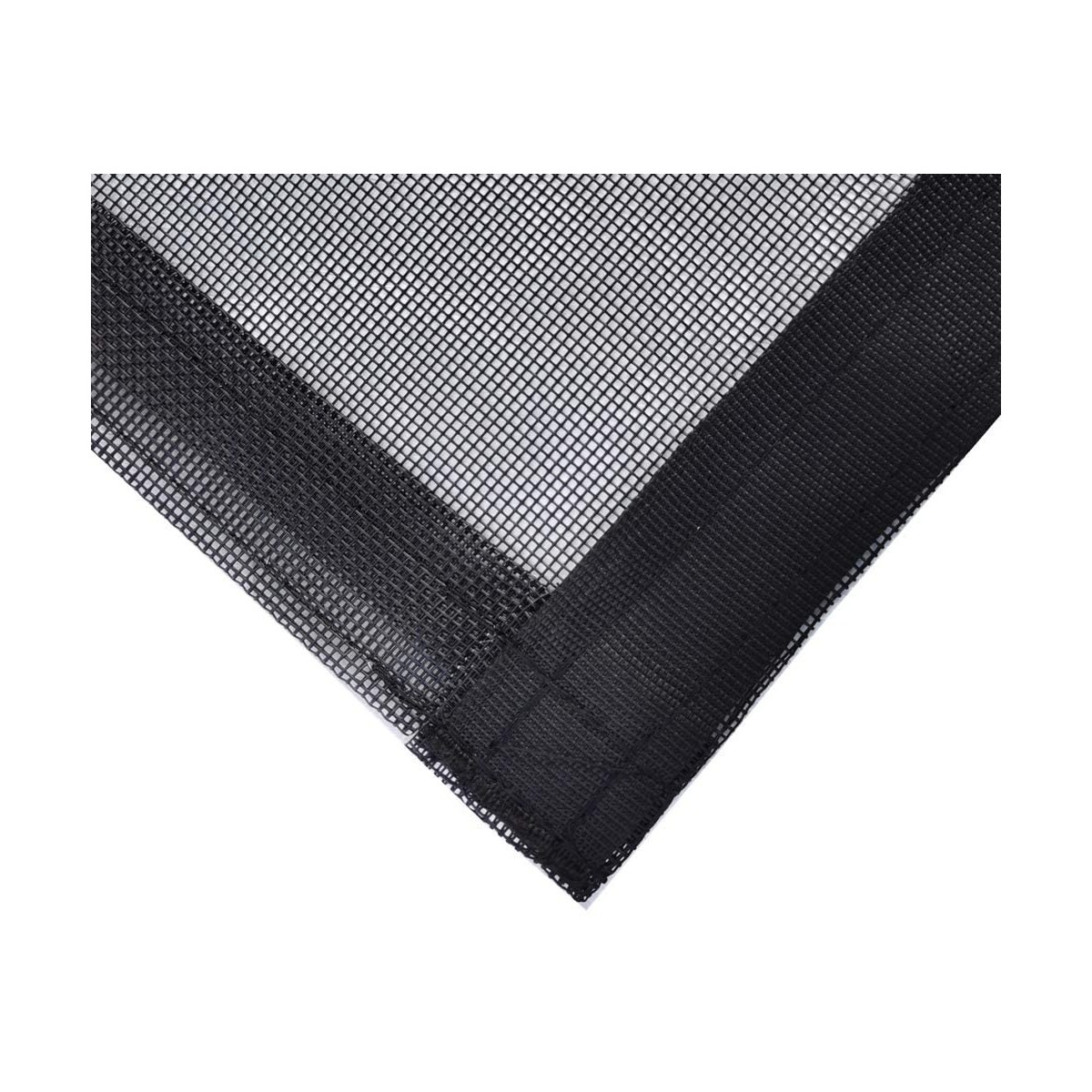 Malla ligera para cubrir la mercancía en su punto superior y perimetralmente de una caja abierta de un camión o contenedor. Toldo de malla mosquitera negra reciclable, ribeteada en todo su alrededor a para evitar su deshilache. Con unas dimensiones de 14 x 4 metros