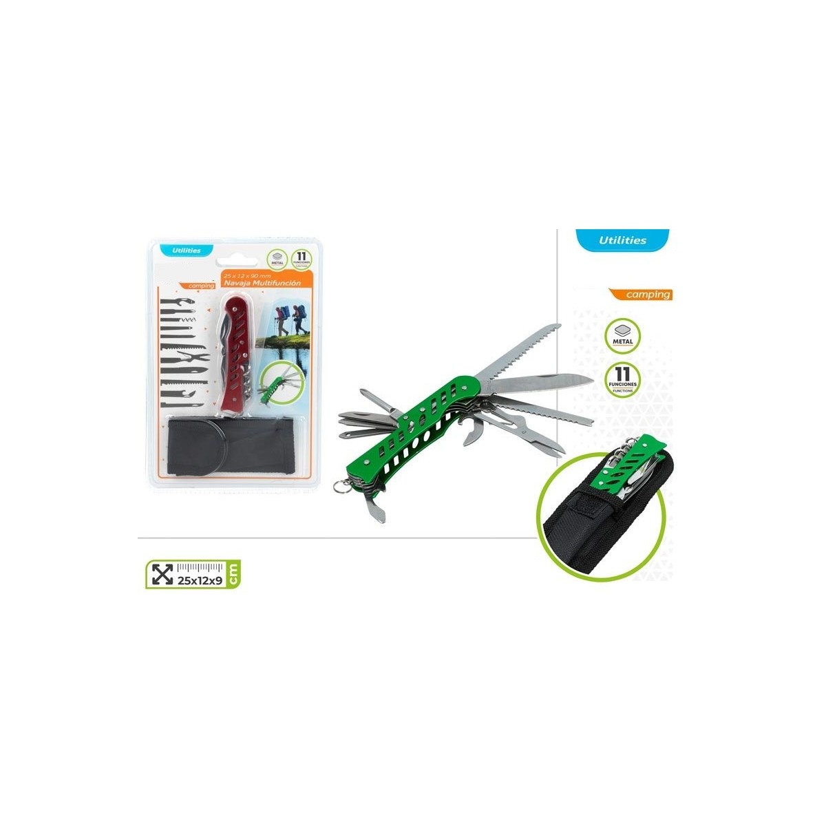 NAVAJA MULTIUSOS 11 FUNCIONES CON FUNDA BLISTER 25X12X90MM