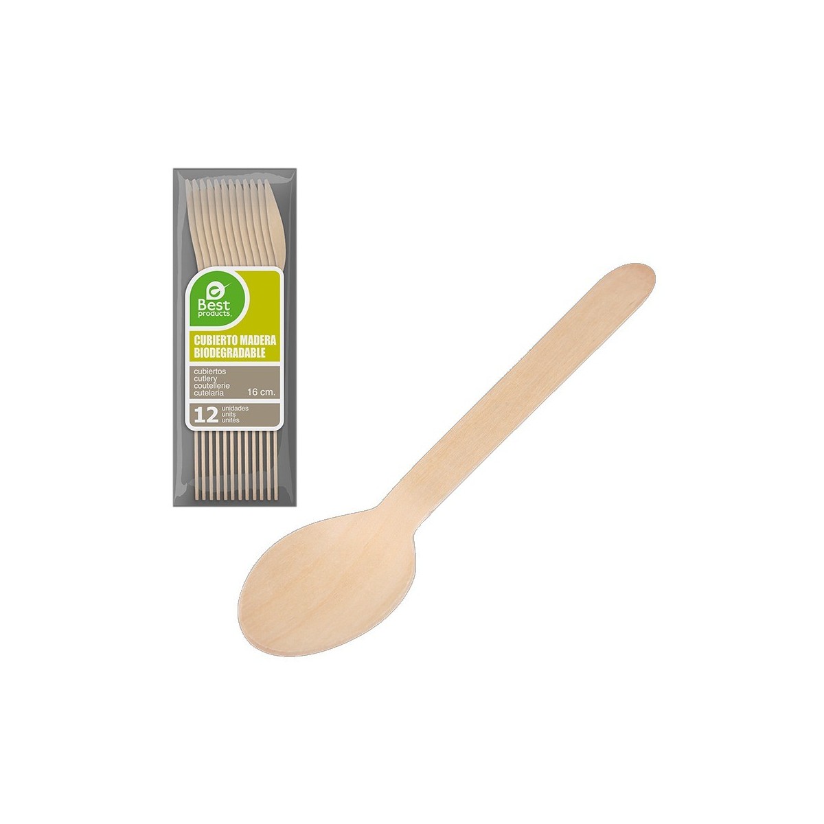 CUCHARA DE MADERA BIODEGRADABLE 16CM BLISTER 12UDS