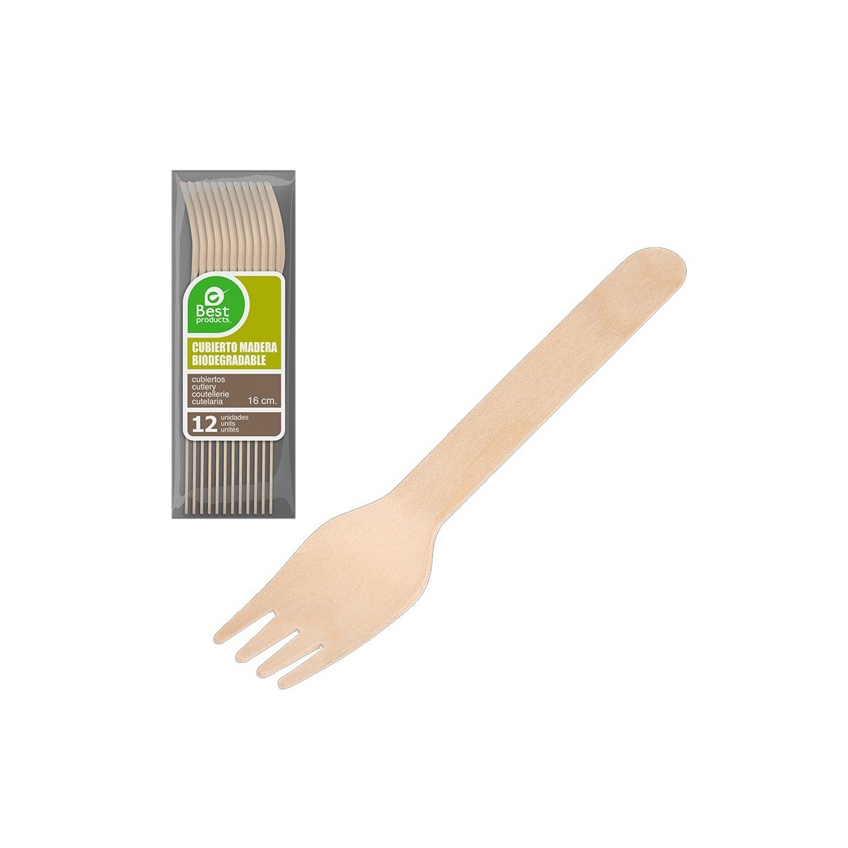 TENEDOR DE MADERA BIODEGRADABLE 16CM BLISTER 12UDS