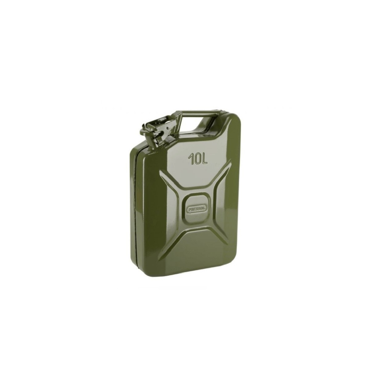 Bidón metálico fabricado en chapa de Acero de 0,8 mm. de espesor. Tipo Jerrycan. Chapa pintada por el exterior y el interior. Homologado por la norma UN de transporte de hidrocarburos. Soldadura sin costuras, Las hendiduras dan mas robustez al bidón. Está soldado a la perfección para reducir el riesgo de fugas. Adecuado para repostar varios tipos de vehículos de motor. También se puede utilizar como portador de keroseno al aire libre. Bidón muy adecuado para el transporte de diferentes tipos de hidrocarburos y aceites.Soluciona los problemas de transporte y almacenamiento de hidrocarburos en situaciones lejanas de gasolineras. Cumple las medidas de seguridad necesarias para el transporte de hidrocarburos (Norma UN). Tiene una capacidad de 10 litros.