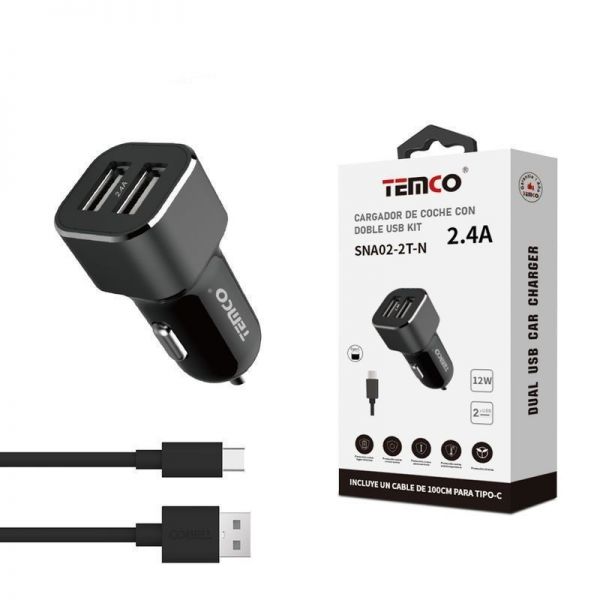 CARGADOR DE TELEFONO DOBLE 2.4A "CON CABLE" TIPO C 12W SNA02-2T - Cargador de coche de doble puerto USB - Este cargador de coche viene con dos puertos que soportan hasta 2.4A de potencia de salida, lo que le permite proporcionar potencia de carga para dos dispositivos al mismo tiempo, suficiente para..