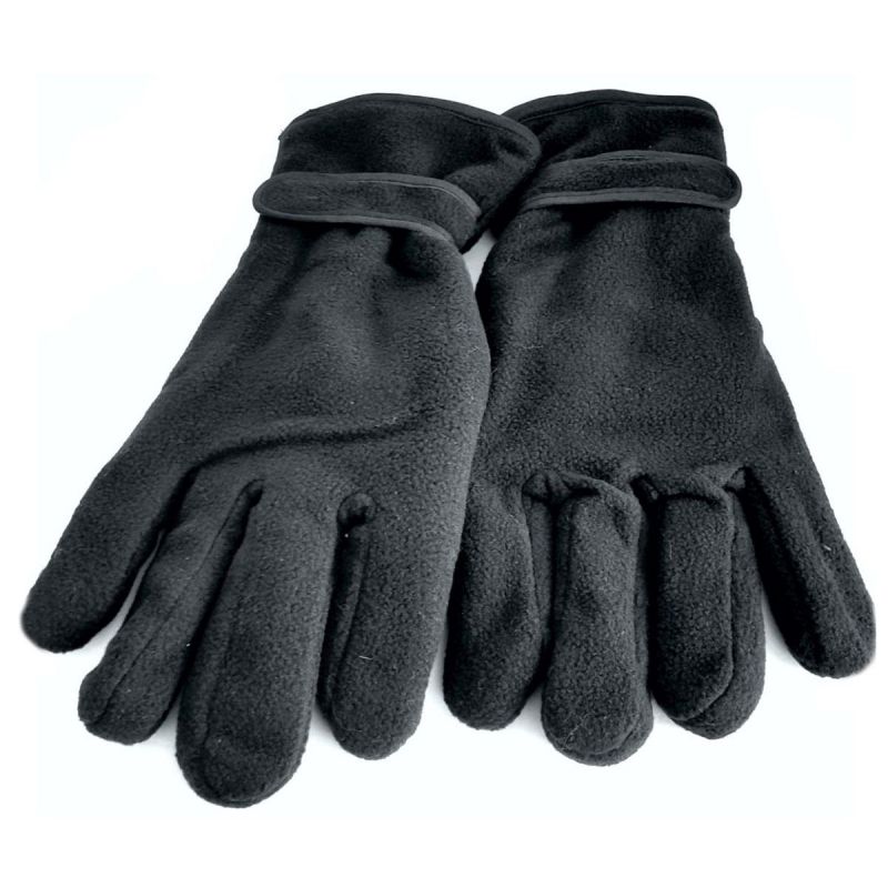 Guantes de forro polar de primera calidad con correa de velcro en la muñeca disponibles en negro.