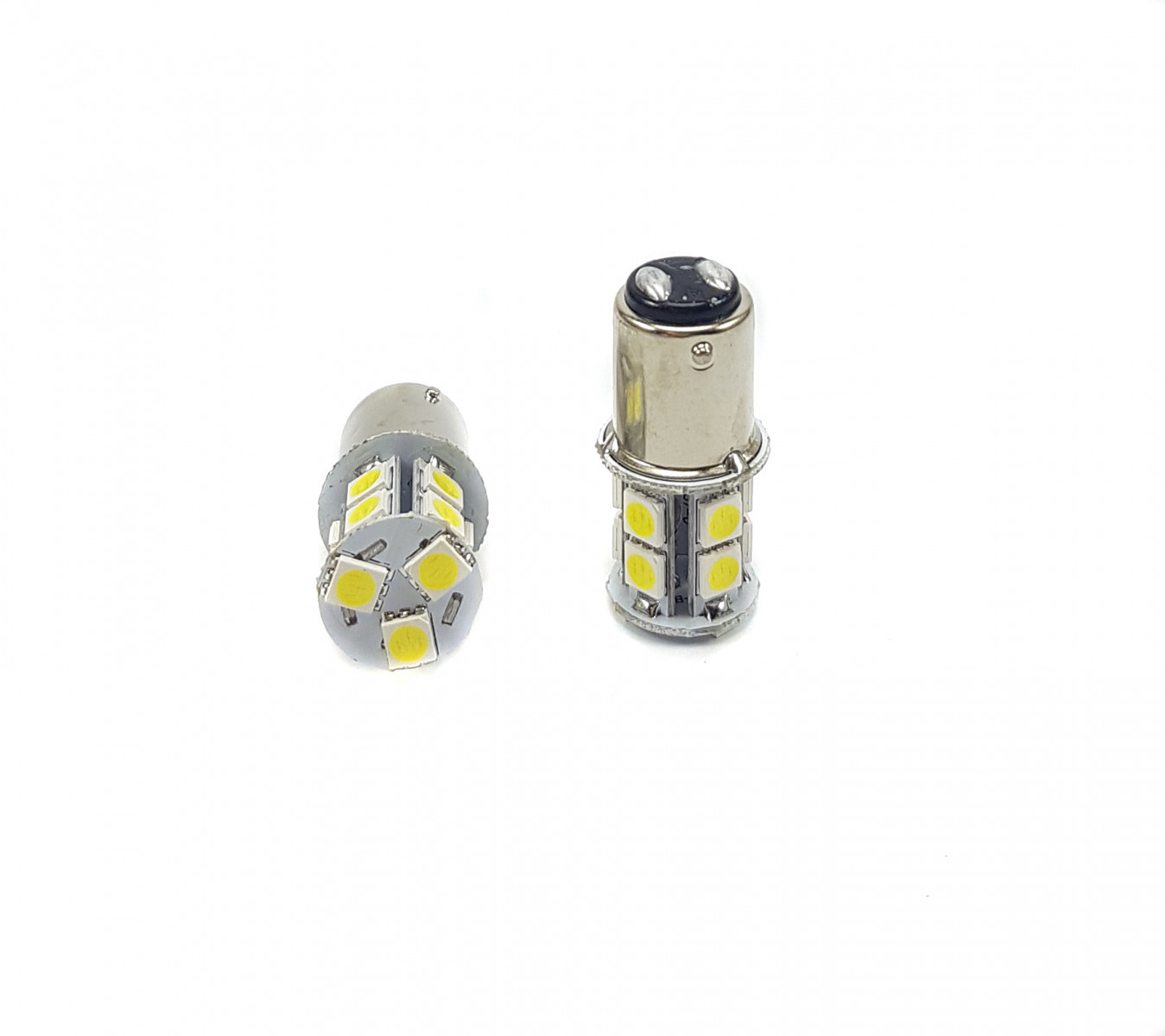 LAMPARA 24V LED 2 POLOS BAY15D WHITE 6000K 4W 13SMD 2UDS - COLOR LUZ: Blanco 6.000K - CANTIDAD LEDS: 13 SMD - POLARIDAD: Éste modelo tiene polaridad. - VOLTAJE: 24V DC - CONSUMO: 4W - LUMENS: 208LM - CANTIDAD: 2 unidades