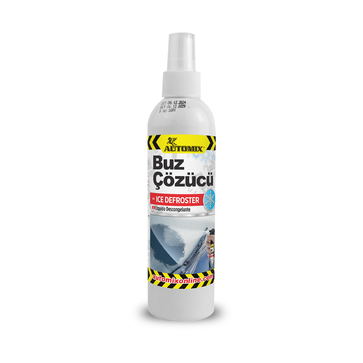 DESCONGELANTE DE PARABRISAS EN SPRAY 500ML AUTOMIX El descongelante disuelve el hielo y la escarcha que se forman en las ventanas en invierno. Proporciona una visión segura mientras conduce su vehículo y no deja manchas. Descongela las cerraduras de las puertas. Previene la recongelación y es de acción rápida. Modo de empleo: Líquido..