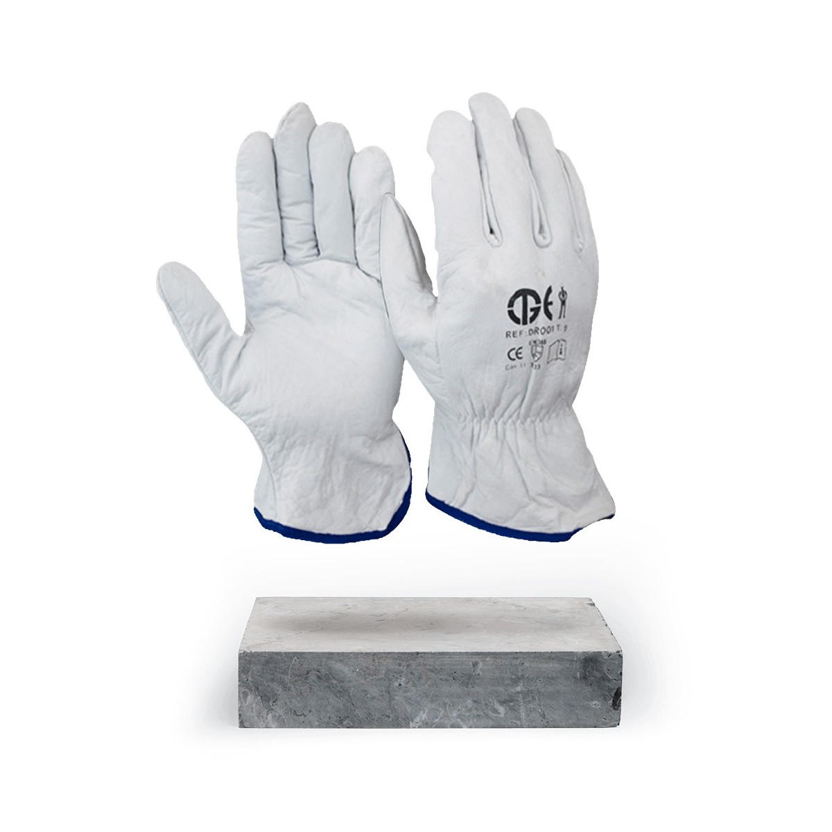 El guante en flor de vacuno en color natural con ribete está indicado para profesionales del transporte, ya sean conductores de largo recorrido o maquinaria pesada, porque protege las manos y absorbe las vibraciones. Además, protege de los riesgos mecánicos ya que aportan comodidad y permiten el tacto de materiales.