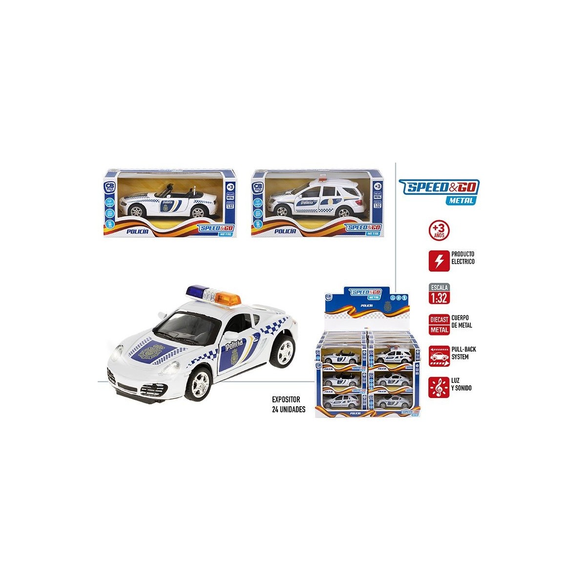 COCHE POLICIA METAL 1:32 LUZ Y SONIDO 3/SURT EXP.24UDS