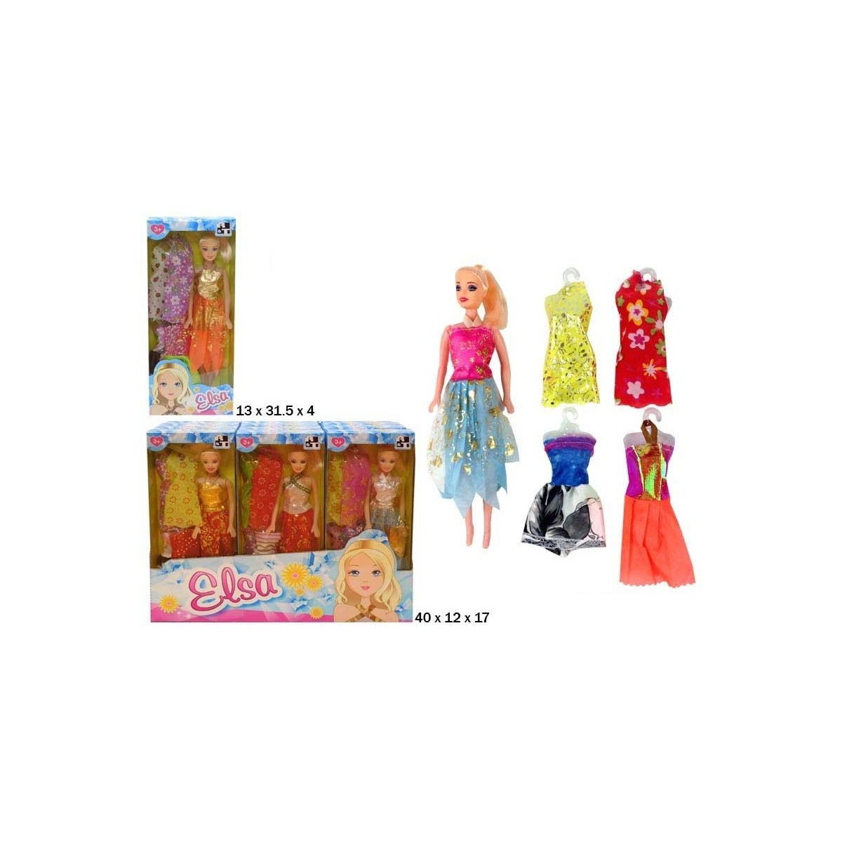 MUÑECA ELSA 4 VESTIDOS BLISTER EXP.12UDS