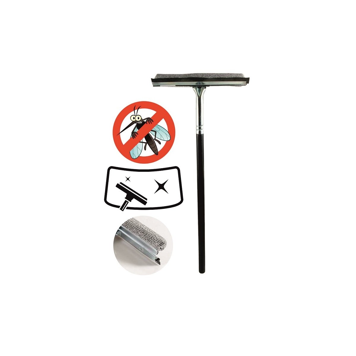 RASQUETA LIMPIACRISTALES CON MALLA ANTIMOSQUITOS MADERA 47CM