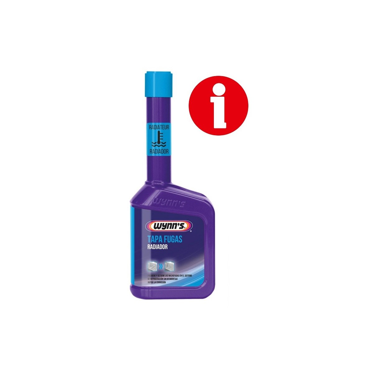 - Wynn’s Tapa Fugas Radiador es la solución ideal para detener y prevenir fugas en el radiador y en el sistema de refrigeración del vehículo. Su fórmula especializada actúa de manera rápida y eficiente, sellando fisuras y grietas de pequeñas dimensiones que puedan estar causando la pérdida de refrigerante. Gracias a su avanzado compuesto sellador, es capaz de alcanzar incluso las áreas más difíciles del sistema, garantizando un sellado duradero sin generar obstrucciones. Esta innovadora tecnología permite mantener el nivel de refrigerante estable, evitando el sobrecalentamiento del motor y prolongando la vida útil del sistema de enfriamiento.