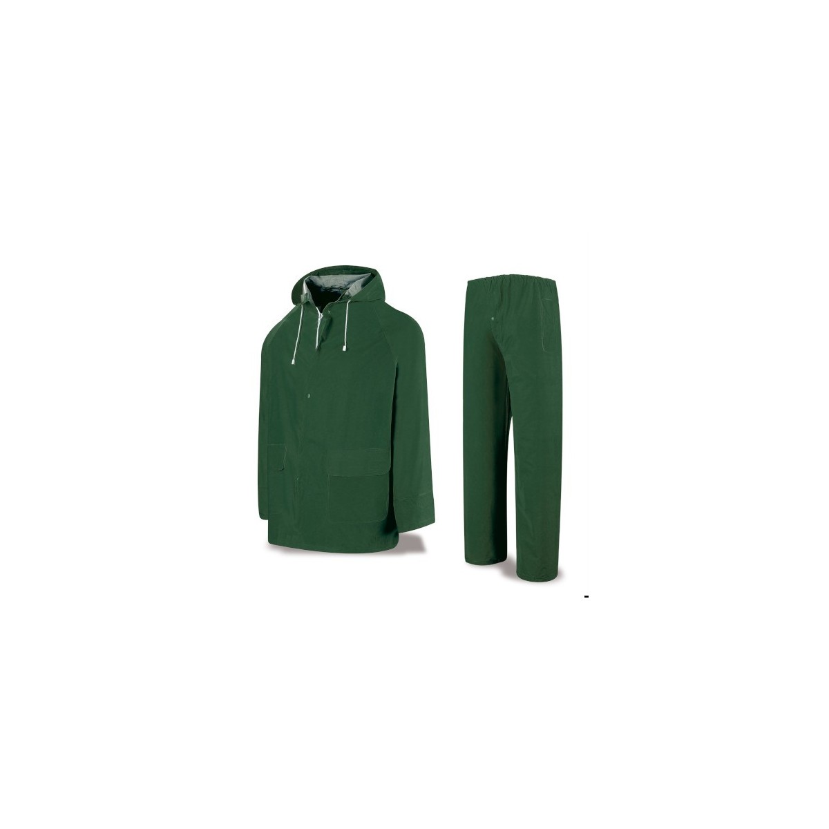 Traje de Agua de PVC de 0,32mm de grosor, compuesto por chaqueta con capucha y pantalón. Costuras termoselladas