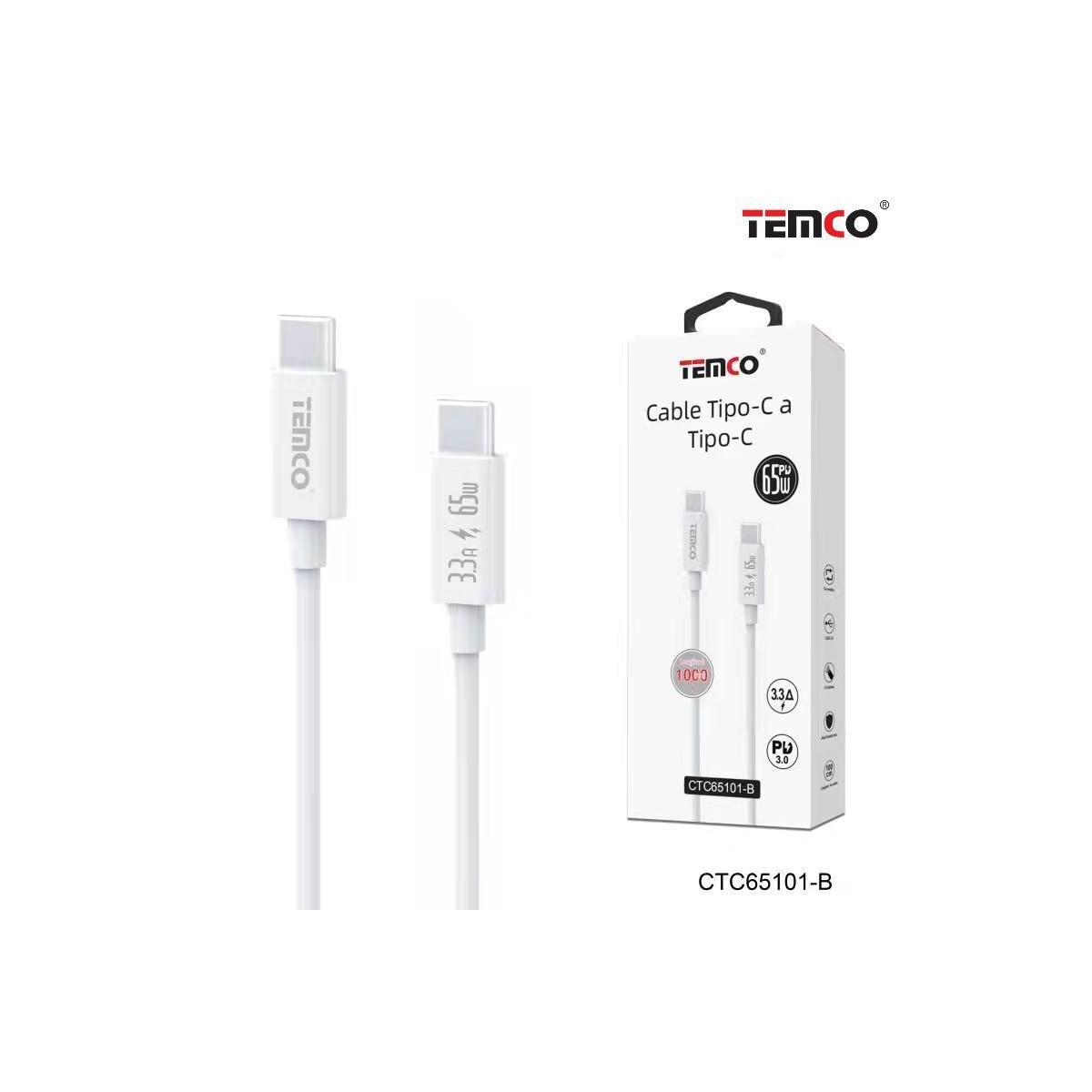 CABLE DE TELEFONO 3.3A 1M TIPO C A TIPO C 65W BLANCO 65103 C/10