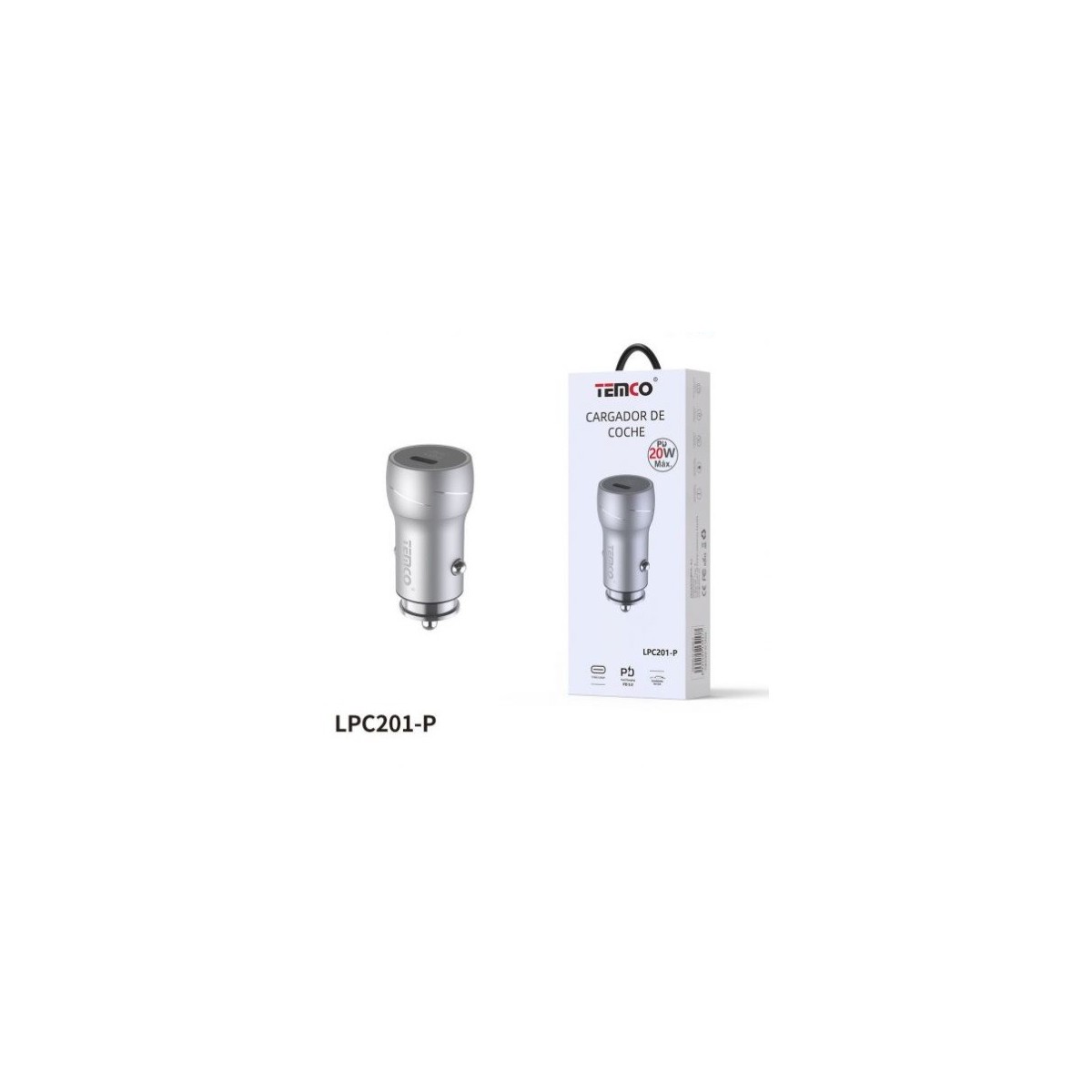 CARGADOR DE TELEFONO PD20W "CON CABLE" TIPO C A IPHONE PLATA LPC201-L-P