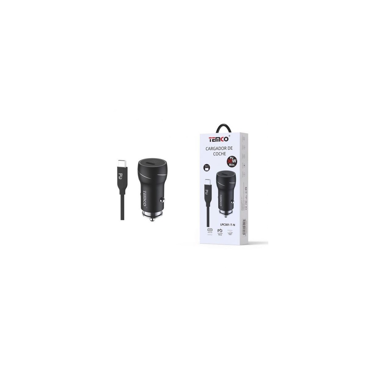 CARGADOR DE TELEFONO PD30W "CON CABLE" TIPO C A TIPO C NEGRO LPC301 C/10