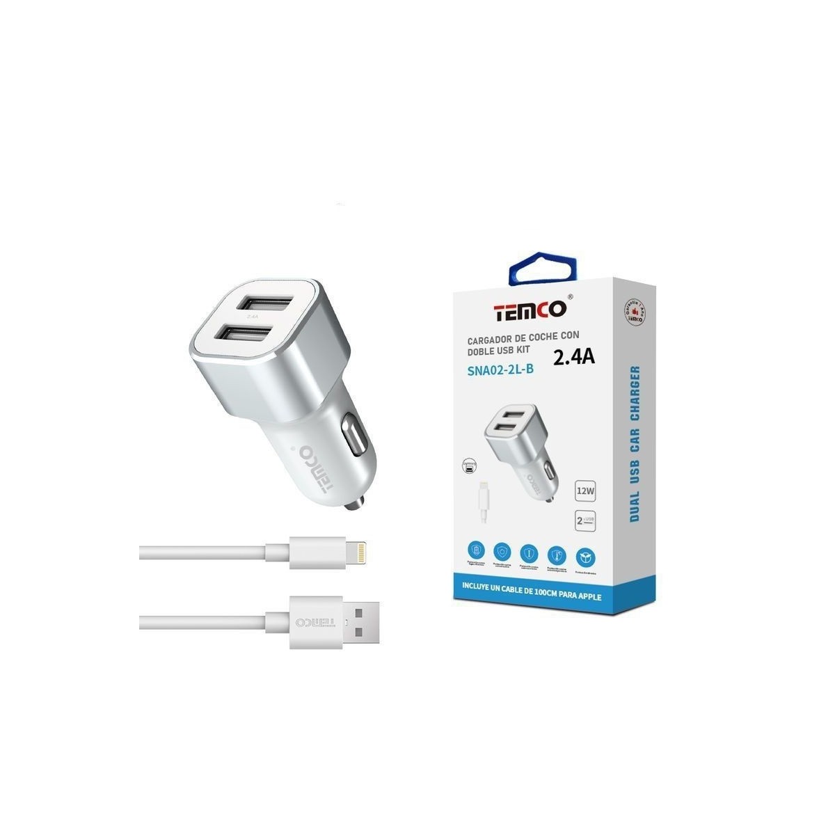 CARGADOR DE TELEFONO DOBLE 2.4A "CON CABLE" TIPO IPHONE BLANCO 12W SNA02-2L