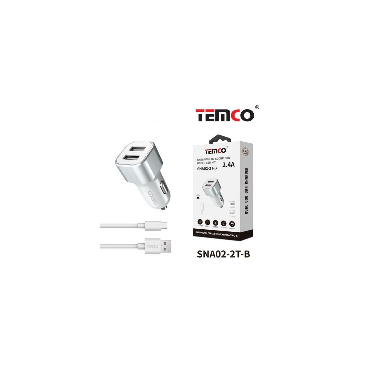 CARGADOR DE TELEFONO 2.4A "CON CABLE" 2USB 12W TIPO C SNA02-2T C/10
