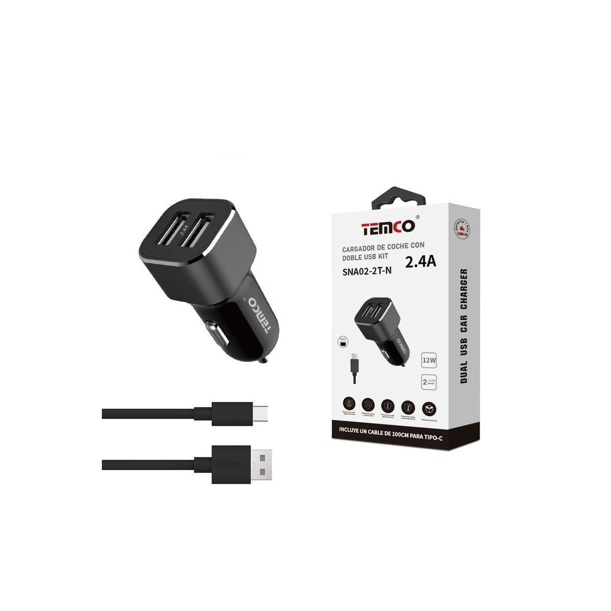 CARGADOR DE TELEFONO 2.4A "CON CABLE" 2USB 12W TIPO C NEGRO SNA02-2T C/10
